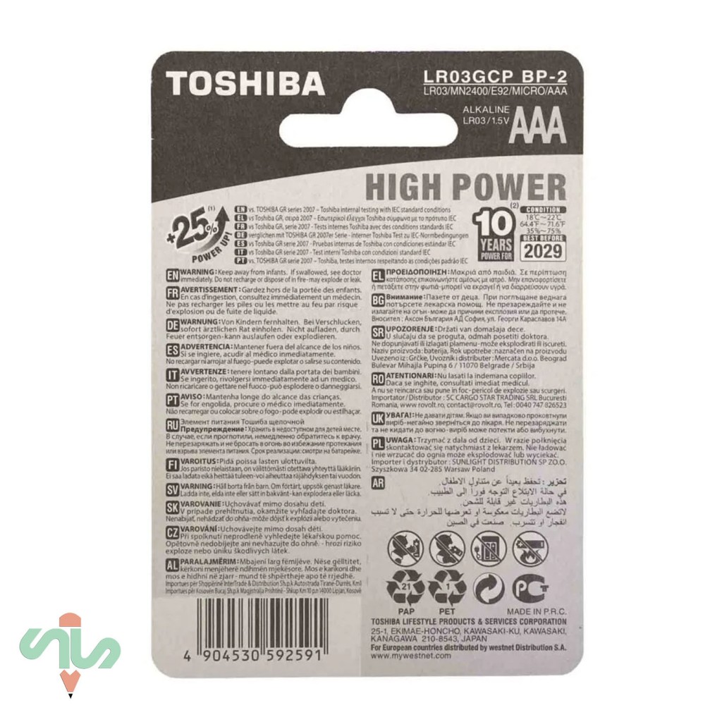 باتری نیم قلمی آلکالاین توشیبا مدل High Power بسته 2 عددی
