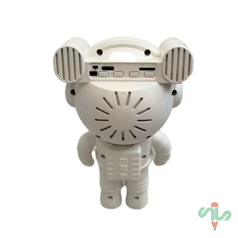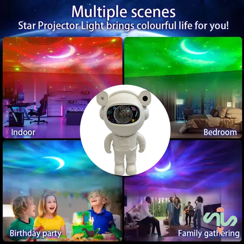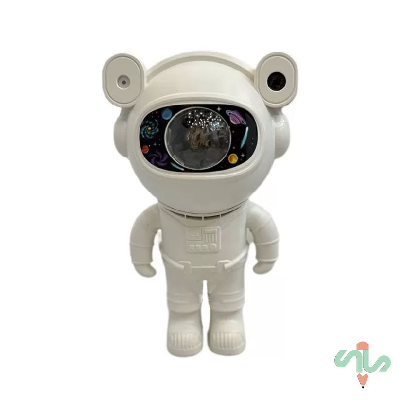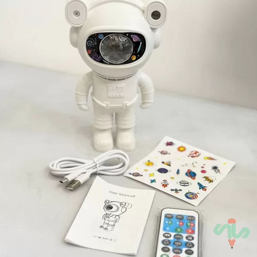بدنه این چراغ خواب از جنس پلاستیک مقاوم ABS ساخته شده که در برابر ضربه، خط و خش و فشار مقاوم است و دوام طولانیمدتی را تضمین میکند. طراحی فضانورد بهگونهای است که قسمت سر محصول همان پروژکتور کهکشانی بوده و با اتصال آهنربایی روی بدنه قرار میگیرد؛ همین ویژگی به شما اجازه میدهد زاویه نور را بهدلخواه تنظیم کرده و جلوهای واقعی از آسمان پرستاره، سحابیها و نورهای رنگی آرامشبخش را روی سقف یا دیوار ایجاد کنید.