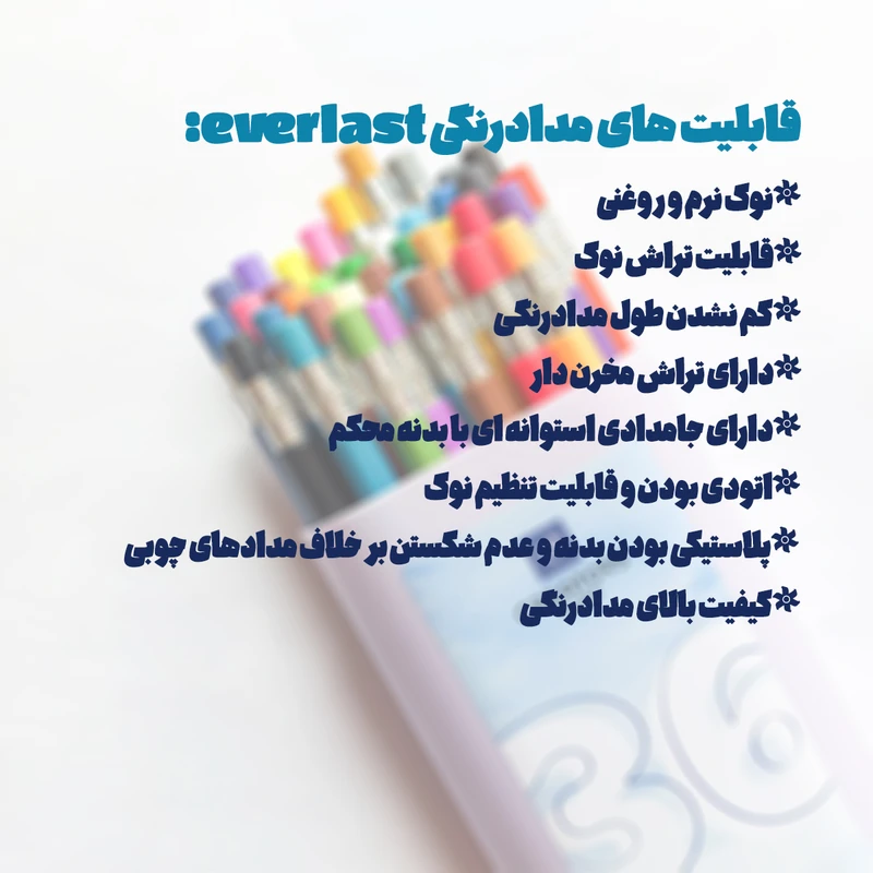 مغزی این مداد رنگیها با ضخامت ۲.۶ میلیمتر و بافتی نرم، روان و لطیف طراحی شده است.