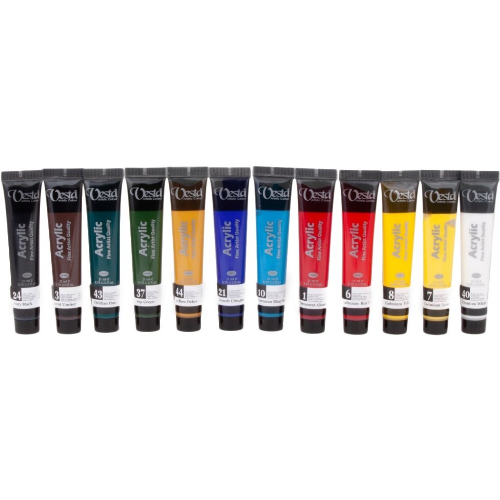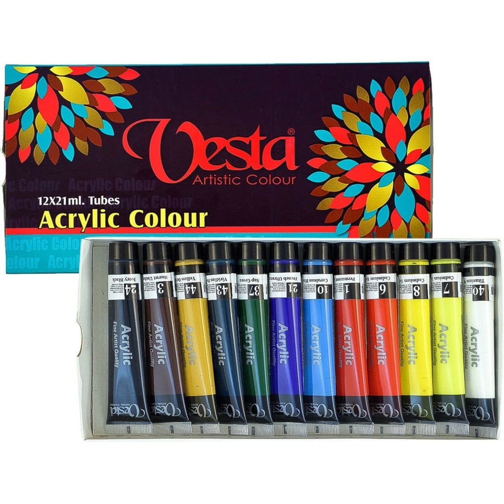 رنگ اکریلیک Vesta بسته 12 عددی – انتخابی حرفهای برای هنرمندان خلاق